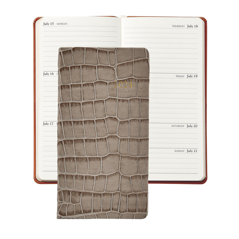 2024 6″ Pocket Journal Planner | Stone Embossed Crocodile Leather
